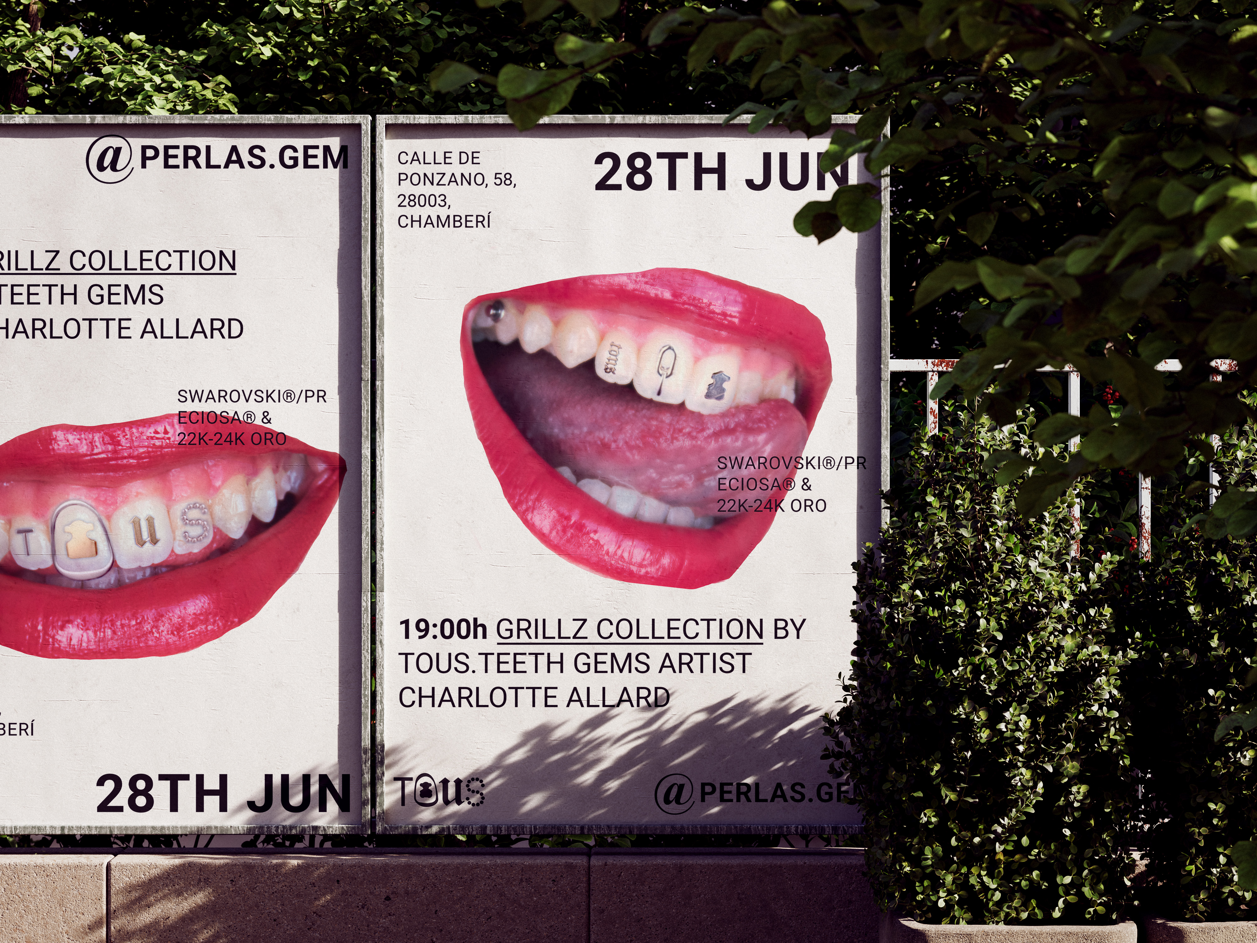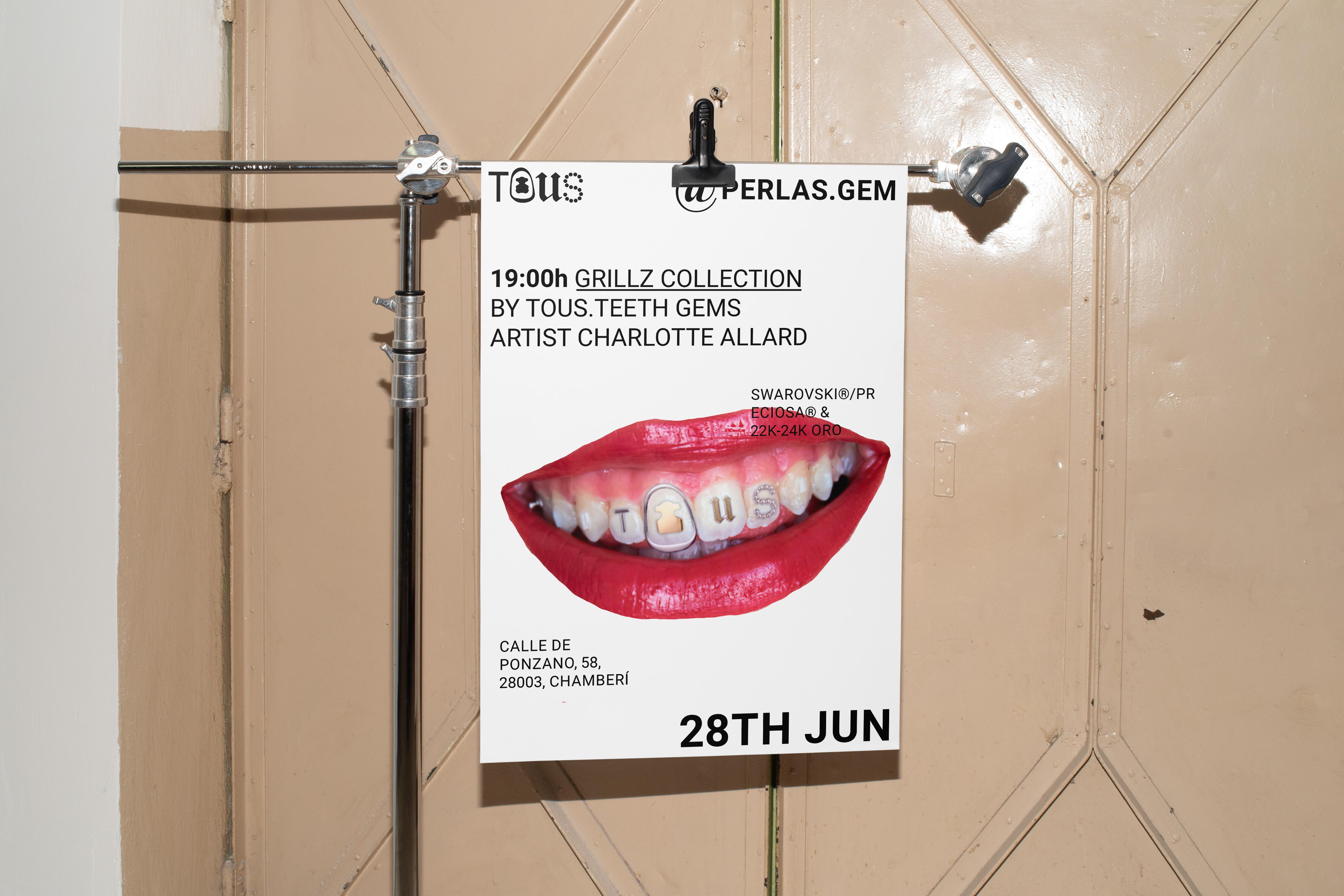 This project proposes an innovative collaboration between Tous and dental gem artist Charlotte Allard (@perlas.gem). The concept invites Tous, renowned for its distinctive jewelry style, to venture into the world of grillz: custom tooth covers crafted from precious metals and adorned with gemstones.